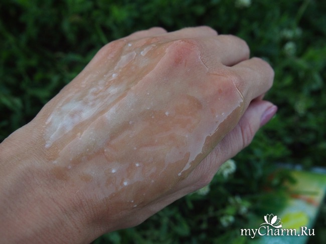 Скраб скорее напоминает отшелущивающий гель, поскольку имеет жидкую структуру, способную растекаться на коже, но и хорошо распределяться на ней, что для меня гораздо приятнее, нежели натираться сухими частичками, иной раз травмируя кожу.