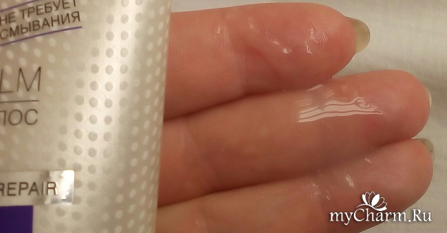 Сам бальзамчик белого прозрачного цвета. Аромат имеет приятный, но на волосах он не задерживается.