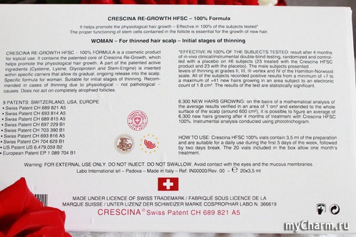 В одном из прошлых обзоров я писала о своей проблеме выпадения волос и возобновления их роста, а также о своем помощнике - шампуне Crescina швейцарской торговой марки Labo https://www.mycharm.ru/kosmetika/obzory/shampun-crescina-na-strazhe-krasoty-i-zdorovya-volos/. Сегодня же хочу рассказать об уникальном ампульном препарате Crescina, способного восстановить физиологический рост волос, действие которого сопоставимо с инъекционными салонными процедурами.