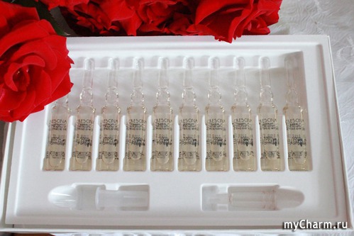 Средство необходимо использовать курсом: наносить ежедневно в течение пяти дней, затем делать перерыв на два дня. Рекомендованный минимальный период применения два месяца, коробки в двадцать ампул мне хватило ровно на половину курса, но и после него я увидела потрясающие результаты.