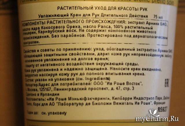 YVES ROCHER Увлажняющий крем для рук длительного действия испытание прошел на отлично. Готова поблагодарить и похвалить производителя за исполнение всех заявленных свойств средства.