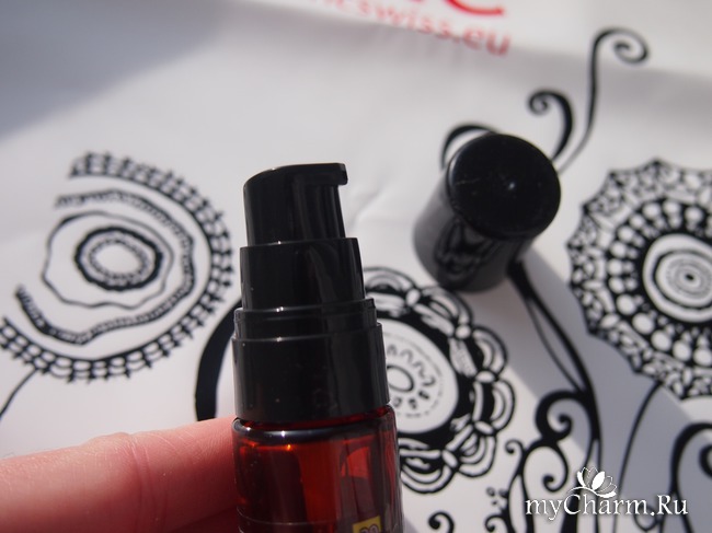 не совсем по цветовому решению похожа на формат DNC (может это и не DNC вовсе, подделка? - скажете вы, но нет, сама фирма прислала мне этот флакончик на тестирование, поэтому уверяю). Итак, упаковочка у нас белая с разноцветными полосками с одного края, через отрезное окошечко можно полуглазом увидеть сам флакончик. Удобный флакон, скажу вам, очень удобный.