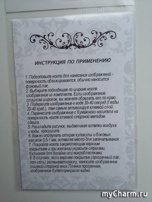 Каждый лист слайдер - дизайна запечатан в прозрачный пакетик и имеет вкладыш с инструкцией по применению.