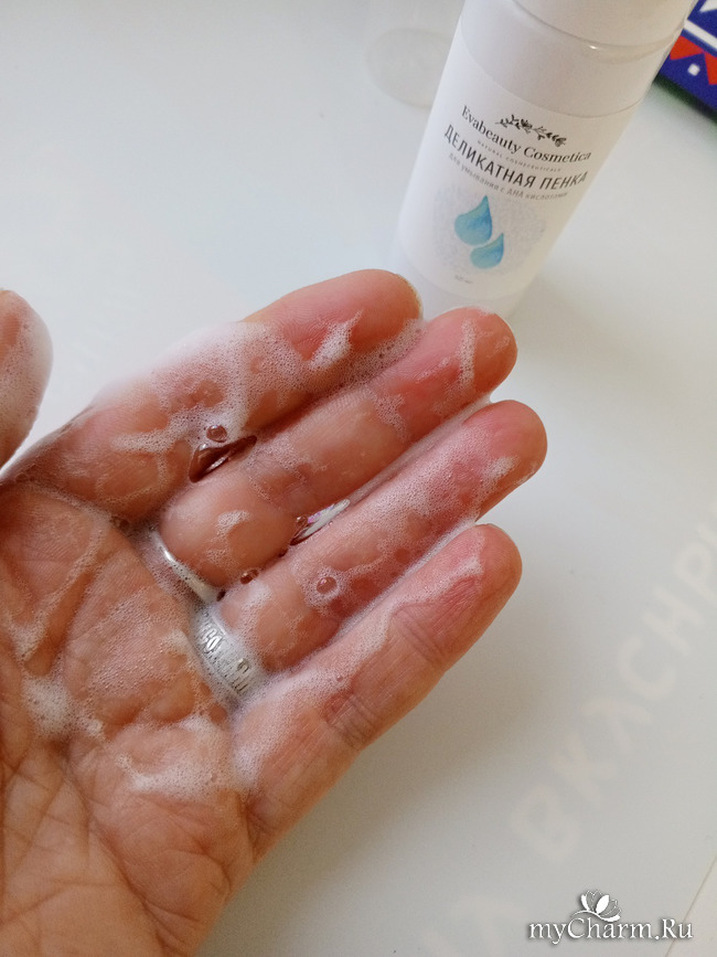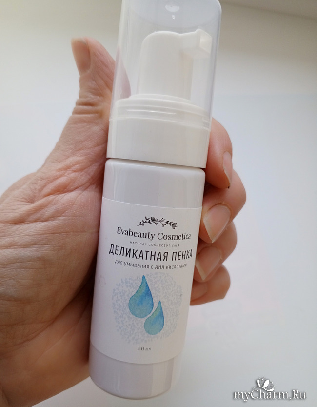 Но, совсем недавно, мне в руки попала "Деликатная пенка для умывания с АНА кислотами" от Evabeauty Cosmetica.