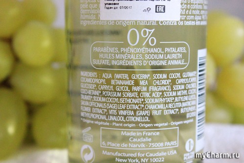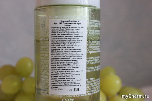 Как и другие средства производства CAUDALIE, которыми я пользовалась, этот очищающий мусс привлек внимание своим отличным составом. В нем почти 99% - ингредиенты натурального происхождения.