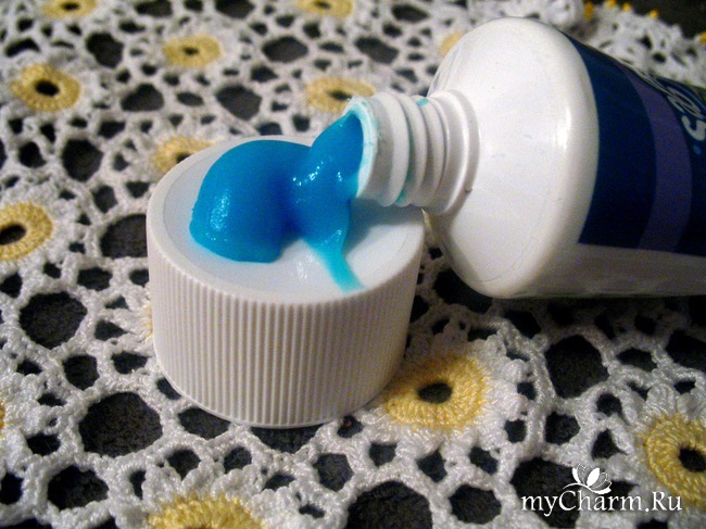 Тем более, что пахнет паста как конфетка или жвачка. И цвет довольно любопытный - синий:
