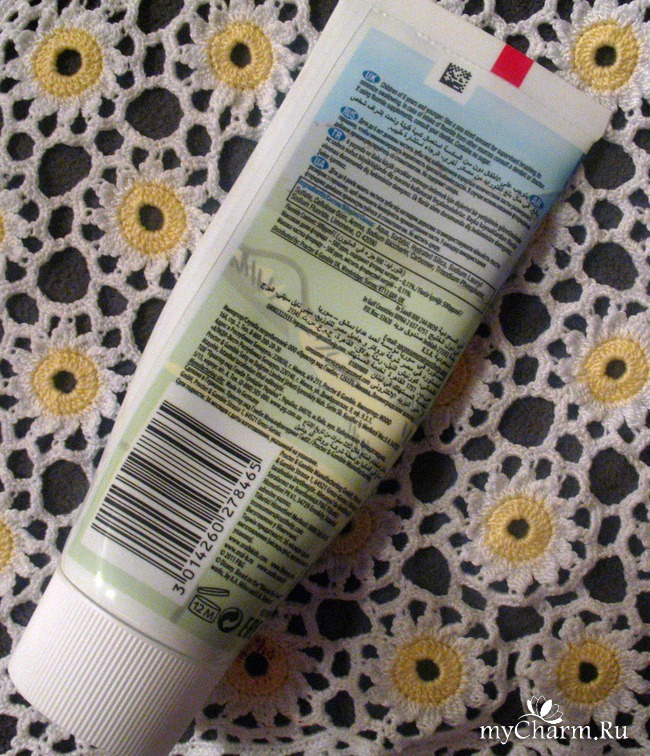 На обратной стороне тубы располагается информация о продукте на нескольких языках. Это, конечно же, хорошо! Минус в том, что шрифт настолько мелкий, что мне со своим нормальным зрением пришлось изрядно под напрячься, дабы рассмотреть хоть что-то!