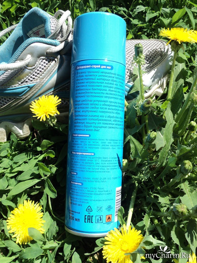 Дезодорант-спрей для ног «Happy Foot» подкупил своей невысокой ценой и большим объемом.Понравилось также, что этот дезодорант производится на том же заводе, что и аэрозоли-освежители воздуха Glade. Компания в городе Вязьма специализируется на спреях и аэрозолях. Это большое производство, а не «частная лавочка», на нем делаются и другие лицензированные средства от известных брендов.