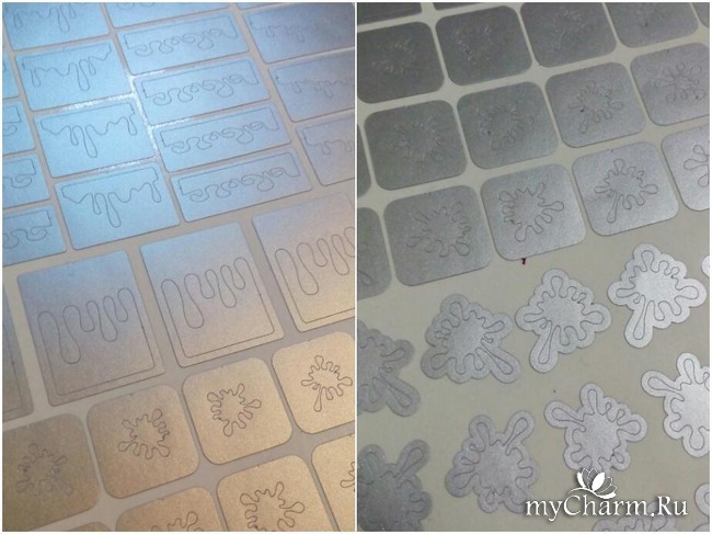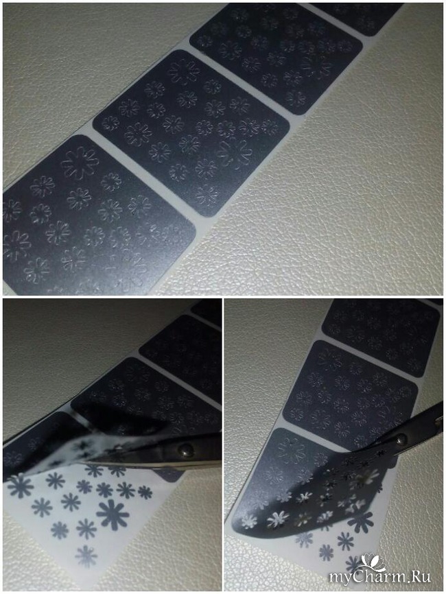 Трафареты представляют собой наклейки на подложке. Наклейки сами по себе тонкие, клейкая основа не сильно приклеивается, в меру. Так что высохший лак не оторвется и клей на лаке тоже не останется.