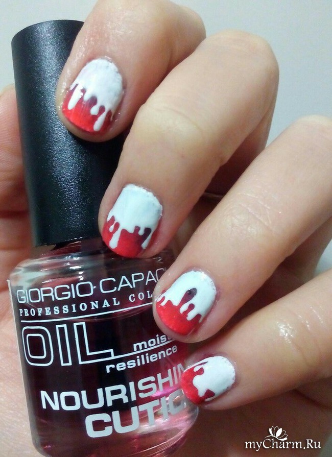 На деле же, конечно, надо приноровиться. Скажу вам, что не сразу у меня все это получилось. Были и промахи, и смазанные дизайны. Еще все зависит от лаков: насколько плотная консистенция у выбранного вами лака, насколько он густой. С жидкими лаками у меня плохо складывались отношения. Они растекались и смазывали рисунок. Поэтому потренировавшись, я выбрала, какие лаки меня больше всего устраивают.