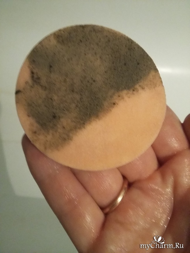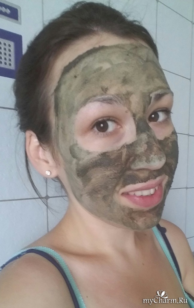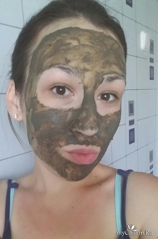 При нанесении на кожу средство имеет темно-зеленый,"болотный" цвет, а по истечении 15 минут застывает и становится светлее. Кожу слегка стягивает и покалывает, но это не критично, и, как мне кажется, говорит о том, что компоненты начинают свое действие и отшелушивают те самые мертвые клетки. Для удаления маски с кожи мне понадобился спонжик, чтобы удалить остатки мягко и не травмировать кожу. На лице еще некоторое время были покраснения.