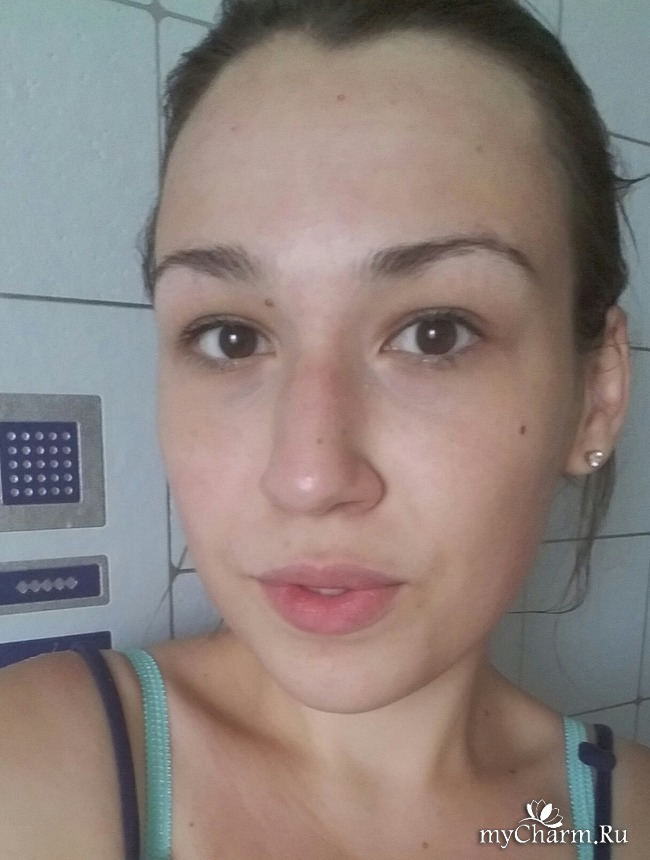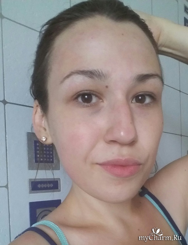 Если присмотреться, на лбу можно заметить жирный блеск, перед нанесением маски я ополоснула лицо водой и вытерла, так как умывалась гелем буквально несколько часов назад.