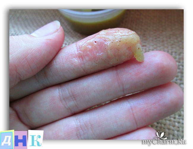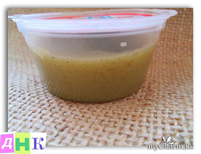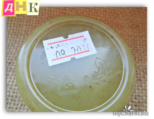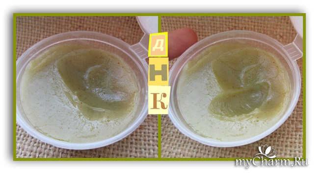 Сам крем приглушенно-зеленого цвета с темными вкраплениями.