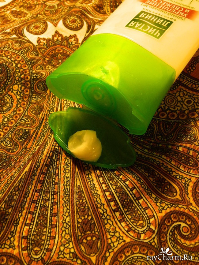 Само средство – однородной консистенции, довольно густое, в отличие от шампуня. Цвет белый, аромат – приятный, травянистый, летний, хотя, чувствуется и некая парфюмерная отдушка. Но она звучит в общем запахе столь гармонично, что иногда мне хочется иметь туалетную воду с таким ароматом.