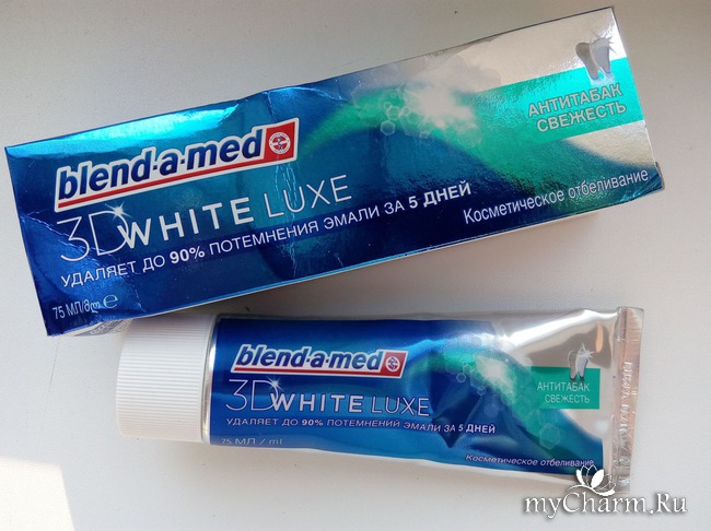 Если вы, как и я, очень любите кофе и крепкий чай, ну и иногда пренебрегаете здоровьем своих легких, советую вам попробовать пасту Blend-a-Med 3D White Luxe Антитабак Свежесть. Даю «зуб», она вам точно понравится!