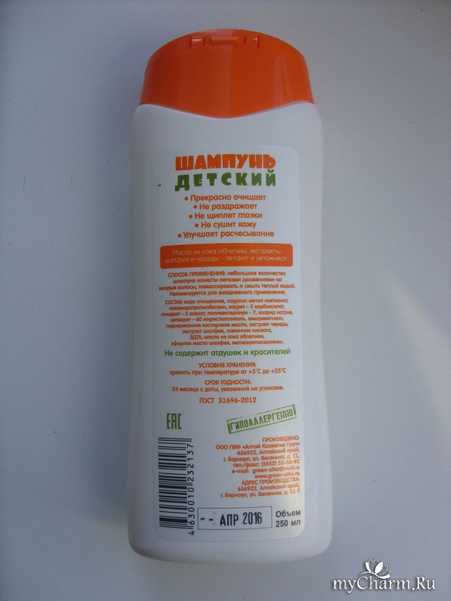 Моей ребятне сей продукт пришелся по нраву, ведь он не раздражает и не щиплет глазки, а также облегчает расчесывание. И я шампунем довольна «от» и «до», на мой взгляд, он идеален во всех отношениях, в том числе и в составе. В нем не значится вредных химических наименований, например, агрессивных ПАВ по типу лаурилсульфата натрия, синтетических отдушек и красителей. Кроме того, продукт относится к разряду гипоаллергенных.