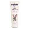 Туба крема из белого лакового пластика объемом 50 гр. Стоил он мне около 70 рублей. На вид действительно очень симпатичный. Туба украшена россыпью детских игрушек в розово-голубом варианте. Для мам, зацикленных на цветах «по половому признаку» малышей (голубой и розовый), это универсальный вариант)) А еще, на лицевой стороне есть изображение чудесного милого зайчика. Моя маленькая дочка на вопрос: «А какой крем мы возьмем?» Отвечает: «Кремик с зайчиком».
