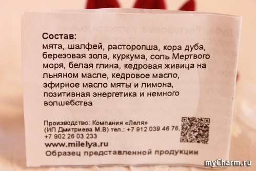 Состав зубного порошка очень насыщенный, полностью натуральный и содержит обилие растительных экстрактов, молотых трав, морскую соль, белую глину, композицию эфирных масел мяты и лимона. И конечно же, такие важные компоненты, как позитивная энергетика и немного волшебства. Они присутствуют в каждом средстве "Леля" и, поверьте, в этом действительно что-то есть.