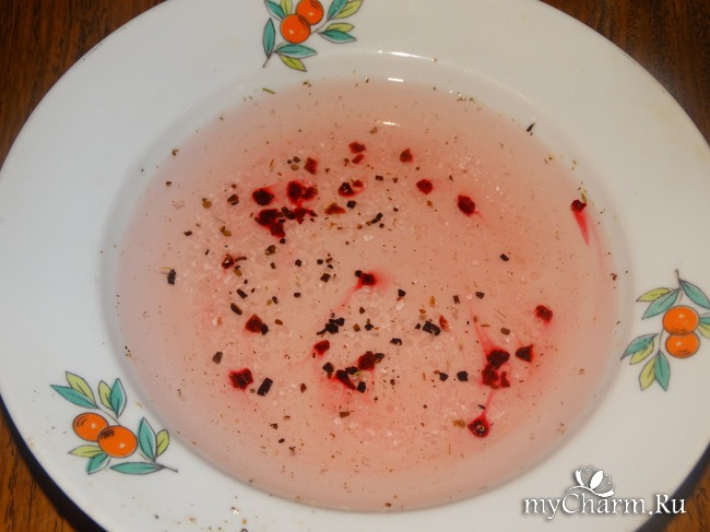 Обратите внимание, как окрасилась водичка - это всё свекла. Симпатичный такой розовый цвет - мне это очень понравилось.