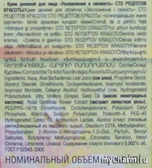 В прошлом обзоре я рассказала о своем новом приобретении – наборе от бренда «Сто рецептов красоты» - креме и маске для лица. Тогда все внимание было приковано к маске (https://www.mycharm.ru/kosmetika/obzory/geleobraznaya-maska-s-cvetochno-travyanymi-notami/?m=2), сегодня же более подробно расскажу о дневном креме «Увлажнение и свежесть».