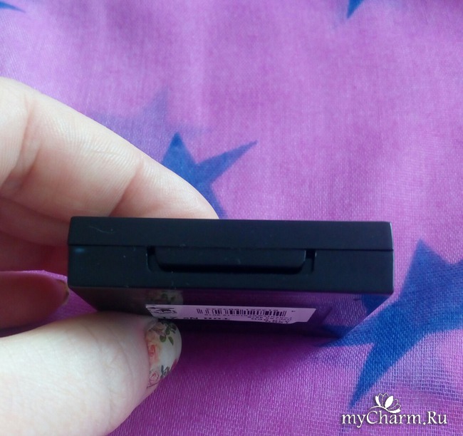 Стандартная, весьма удобная. На крышечке в окошко видны сами тени. Открывается без проблем (лак не скалывается, ногти не ломаются).