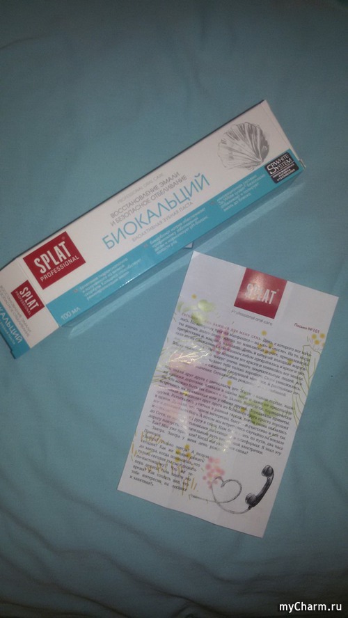 Содержание описывать не буду, открою только то, что оно о любви. Написано тепло и душевно. Оказывается с 2004 года письма в упаковке – фирменная фишка SPLAT. Их, по словам директора, написали сами благодарные покупатели. Необычная и креативная идея.