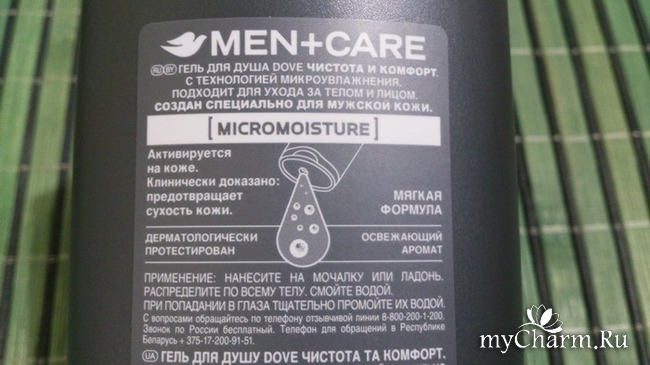 Стоит такой гель порядка 150-170 рублей. Флакон открывается снизу, поэтому удобно использовать его даже, когда осталось совсем немного. Упаковка с мужским характером – закономерно: серый флакон, белые буквы с общеизвестным логотипом Dove. Производитель немногословен: указывает лишь, что он активизируется на коже, обладает приятным ароматом и мягко действует на кожу. Мыть им можно как тело, так и кожу лица. Я, однако, использую его только в первейшем предназначении. Объем упаковки – 250 мл.