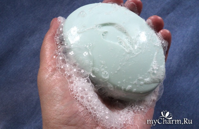 Упаковано мыло было в коробочку, и я вполне себе приготовилась к тому, что внутри будет белоснежное кругленькое мыло с традиционным голубем. Ну, в крайнем случае, розовое. А там оказалось – вот такая красота. Легкий мятно-бирюзовый оттенок, очень благородный и матовый. Понравилось!Слушайте, вот что я открыла. Все детство я пользовалась мылом, и потом в студенчестве тоже. Ничего другого просто у нас не было. На гели перешла не так давно, лет 7 наверное. Но я заметила, что тяга к мылу все равно не пропадает. Эти движения заучены с детства. Это легко, удобно – взял в руки и намылил. Претензии к мылу я понимаю, но пользоваться легко, этот продукт понятен мне с детства.