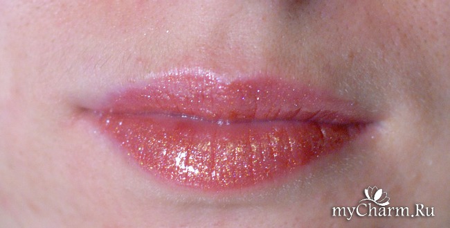 В первый же раз я накрасила им губы без карандаша и без бальзама для губ. Если вы помните последний мой обзор на помаду, то там мои губы с некоторыми шелушениями, во время использования блеска мало что изменилось. И, даже если бы блеск не лег как следует на сухие неровные губы, я бы не стала его винить, скорее это я просмотрела что-то у в уходе. Но блеск лег ровно, по крайней мере визуально это выглядело так. А поскольку мне достался именно перламутровый оттенок, то такое качество, как вам известно, скрывает многие недостатки, благодаря светоотражающим частицам, придающим блеску это сияние.