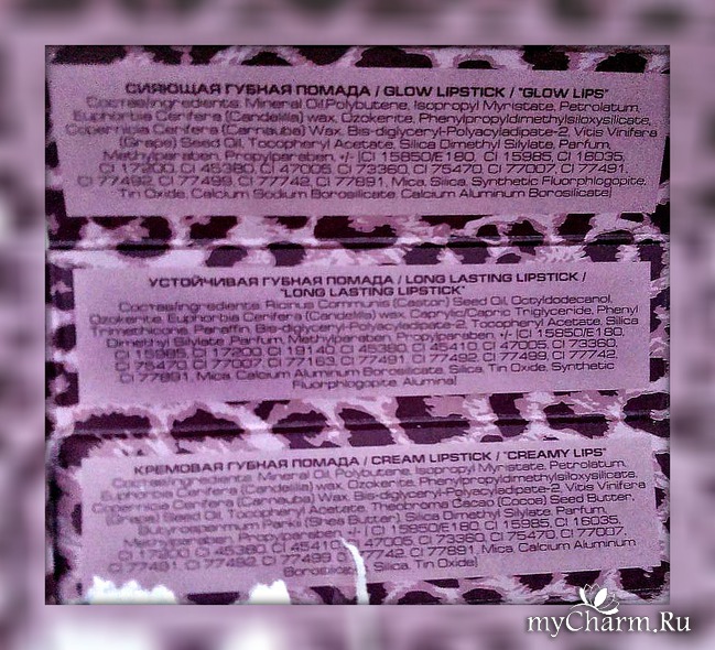 Здесь указан состав не только этой помады (устойчивая), но и двух других из этой же серии. К составам я обычно не присматриваюсь, поэтому и здесь внимание заострять не буду.