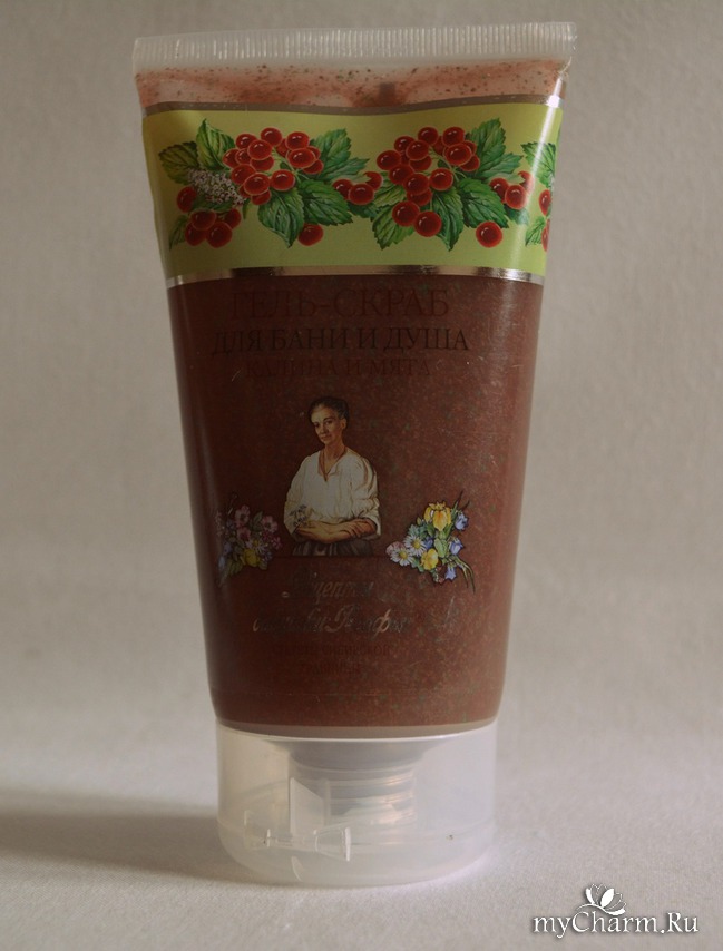 До "Калины и мяты" у меня был гель-скраб с крыжовником от той же "бабушки Агафьи". Так что, я в принципе, представляла, что меня может ждать в упаковке. И не разочаровалась.
