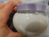 Крем находится в прозрачной пластиковой банке круглой формы с завинчивающейся крышкой, красивого сиреневатого цвета с серебряными точками, которая легко открывается и закрывается.