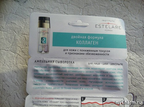 Задумываться о первых морщинках и признаках старения кожи стоит уже после 25 лет, но и раньше не стоит забывать о заботе об упругости кожи. Поэтому надо использовать все достижения современной косметологии, которые могут помочь поддержать естественную красоту. А еще лучше, если такие средства будут удобны для домашнего применения и не будут требовать особых навыков для правильного использования. Об одном из таких доступных помощников в уходе за кожей лица, шеи и зоны декольте поговорим в этом обзоре. Рассказать хочу о продукте, который мне понравился с первого применения и дал ощутимые результаты сразу. Это ампульная сыворотка двойная формула "Коллаген" от Estelare. И название это указано не просто так, ведь в составе содержится двойной коллаген: морской и гидролизированный. Благодаря этому и воздействие на кожу происходит двойное, а значит, и более заметное.
