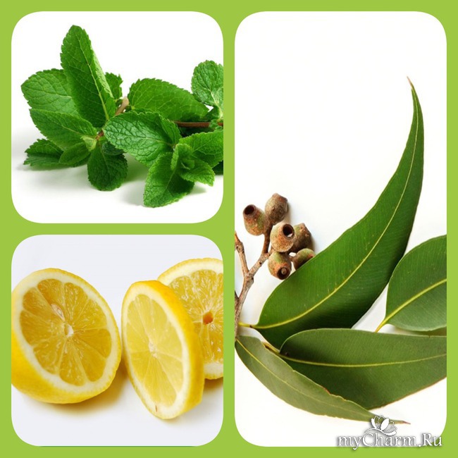 Мята, лимонное и эвкалиптовое масла обладают освежающими свойствами и контролируют саловыделения, нежно ухаживают за кожей.