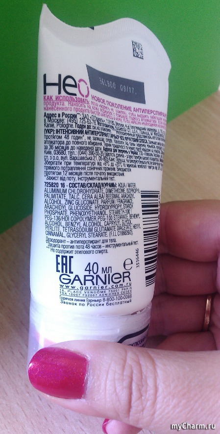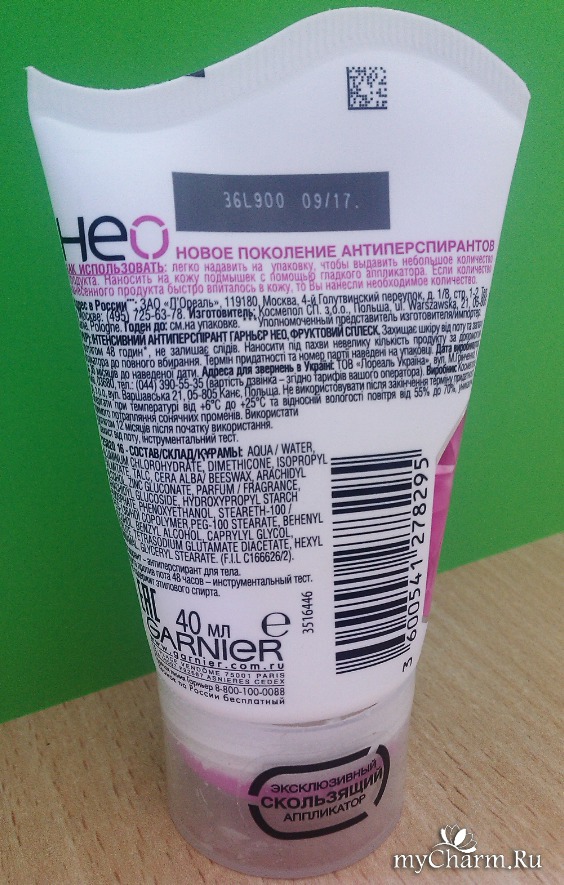После его применения надолго ощущаешь свежесть и легкость, можно быть уверенной, что средство тебя не подведет и в течение 48 часов, тебе обеспечены сухие подмышки и приятный еле уловимый аромат. Для тех, кто не любит дезодоранты с ароматом, есть в линейке гариеньер нео дезодорант без запаха.