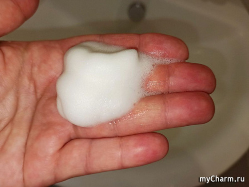 Собственно, последние три недели умываюсь этой пенкой. Использую её самым традиционным способом: наношу на влажную кожу и распределяю массирующими движениями, а потом смываю тёплой водой. Мне приятно ощущать её на коже, нравится эффект: это то самое очищение «до скрипа», но при этом не травмирующее, без стягивания кожи, вполне деликатное, нежное. Есть ощущение, что дневной крем после такого очищения быстрее впитывается, а тональные средства ложатся ровнее. И никакого жирного блеска.