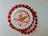 На лицевой стороне моей маленькой баночки с кремом рисунок корня женьшеня и медицинский значок почему-то, змея, обвивающая чашу. Оформление в красно-белых тонах.