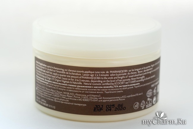 Основным влагонасыщающим ингредиентом является масло жожоба, и оно выбрано здесь не случайно. Полученное из экстракта семян растений, масло жожоба оказывает смягчающее действие на волосы, прекрасно совмещаясь с ними.