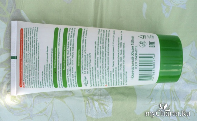 Вы помните, на сайте было несколько публикаций о том, что зеленая метка на шве тюбика означает – наличие в составе натуральных ингредиентов? (например, вот здесь - https://www.mycharm.ru/post/7340/) Я, конечно, несколько скептически к этому отношусь. Наверное, потому что у всех моих кремов черные метки. Да и вообще, сложно поверить, что это что-то значит. Так это или нет – решать вам, но просто информирую вас, что на этом креме зеленая метка!