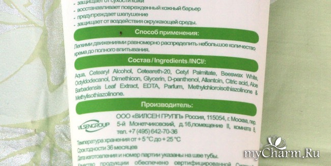 Анализируя состав, можно сказать, что экстракта алоэ здесь не больше, чем других ухаживающих компонентов. Поэтому говорить о большом количестве алоэ сложно – этот компонент во второй половине списка. Но есть и другие полезные для кожи ингредиенты, и их не так мало, как в обычных недорогих кремах. Вот, что есть хорошего в составе: