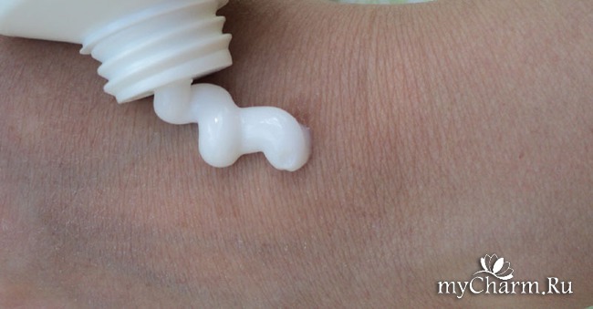 Внешне крем абсолютно белого цвета, однородная и непрозрачная текстура. Не густой, больше похож на лосьон: конечно, не выливается, но и не стоит густой каплей.