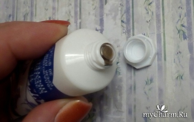 Тюбик венчает восьмигранная отвинчивающаяся крышечка. Изначально носик тюбика был под фольгированной защитой, что полностью исключает возможность проникновения любопытных носиков и несанкционированного вскрытия упаковки. Потому что стандартный срок годности крема составляет три года, а вот после вскрытия тюбика он резко сокращается до одного года. Об этом нас информирует специальный значок на обороте тюбика.