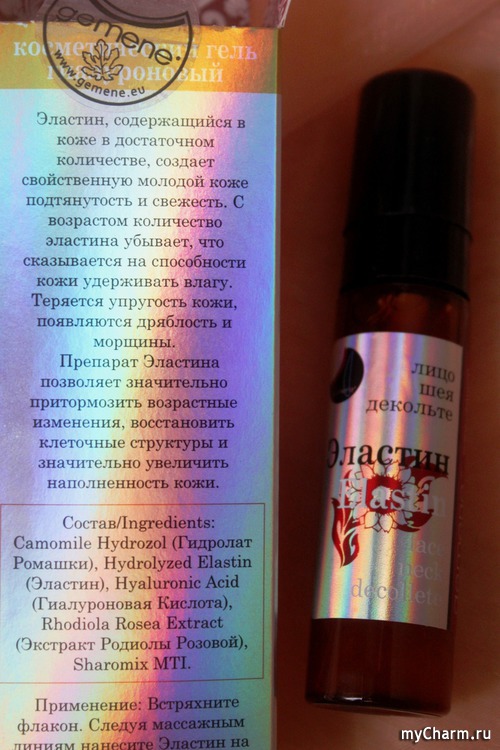 Именно такое определение выдает Википедия. Так вот представьте на минуточку, как после данного описания я посмотрела на средство, полученное на тестирование - Эластин Gemene для лица, шеи и зоны декольте. Мне оно показалось волшебным и чудодейственным. Кое-как дождалась вечера, чтобы смыть косметику и начать пользоваться.
