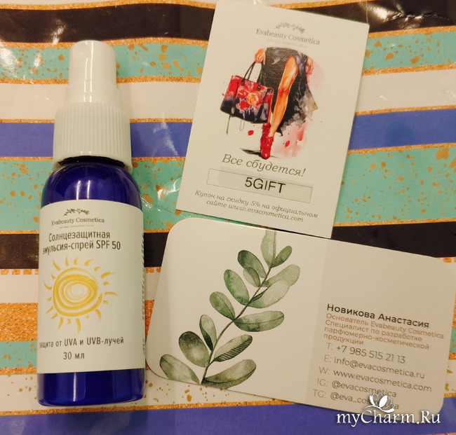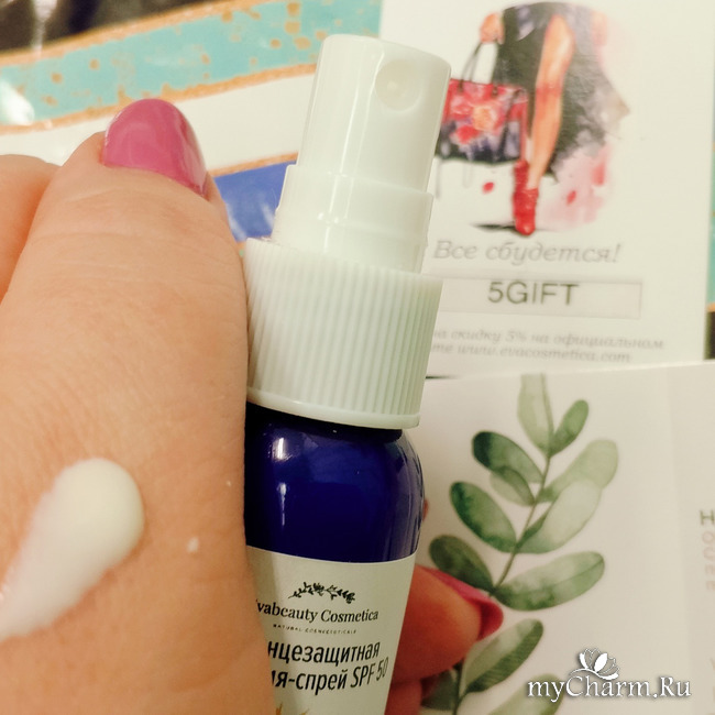 Продолжаю делиться впечатлениями о летних средствах от бренда Evabeauty Cosmetica, и на очереди Солнцезащитная эмульсия-спрей SPF-50: