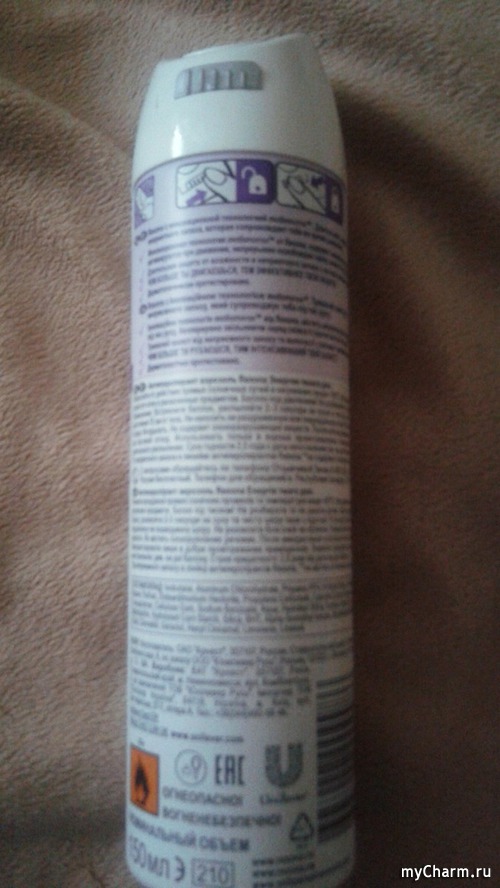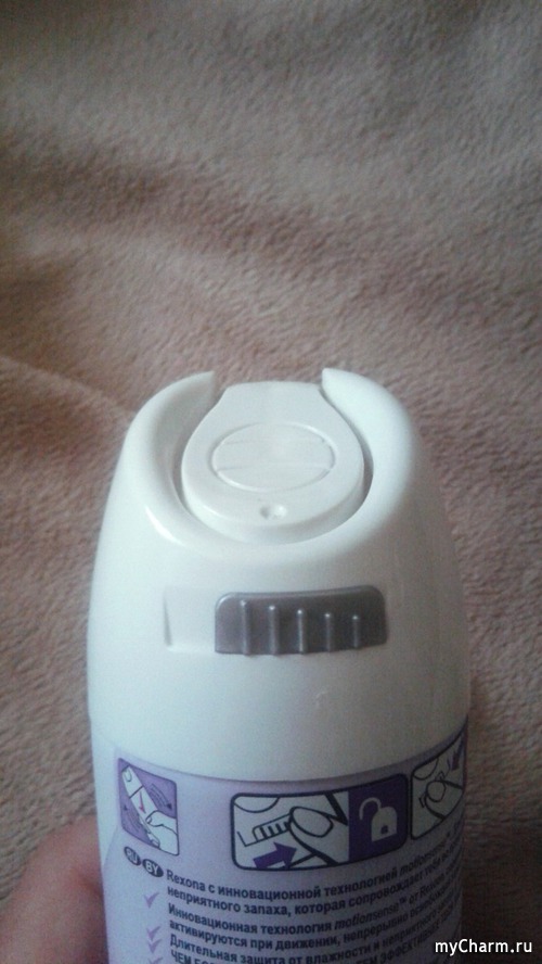 На флаконе имеется замок для защиты от случайного нажатия на крышку и распыление дезодоранта.