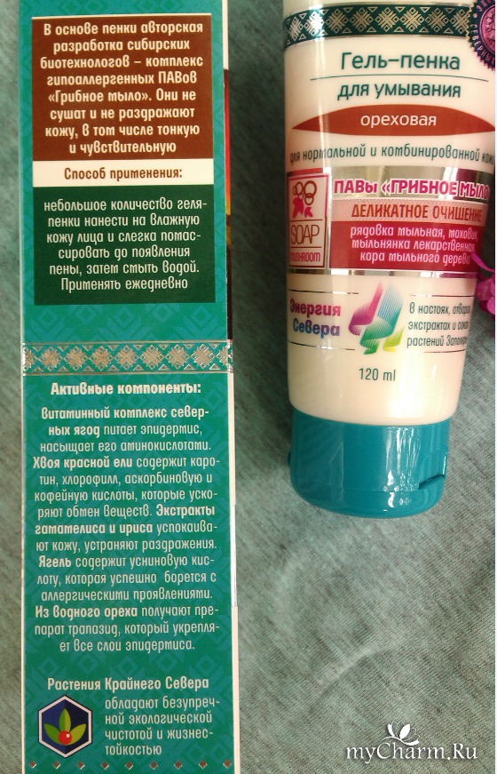 Для умывания, я использую гель-пенку из серии "Энергия севера" ореховая от косметической компании Венец Сибири.