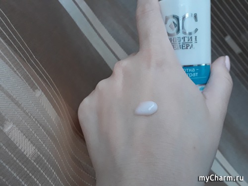 Консистенция средства довольно густая, гелевая, не тает в руках. Но быстро впитывается.