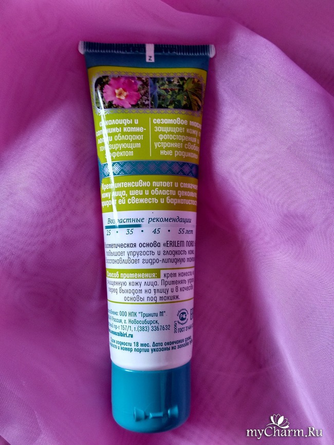 Крем «Сезамовый» является защитным и рекомендован к использованию от 25 лет. В основе крема – гиалуроновая кислота и масло зародышей риса. Средство подходит для нормальной и комбинированной кожи, я как раз являюсь обладателем смешанного типа.