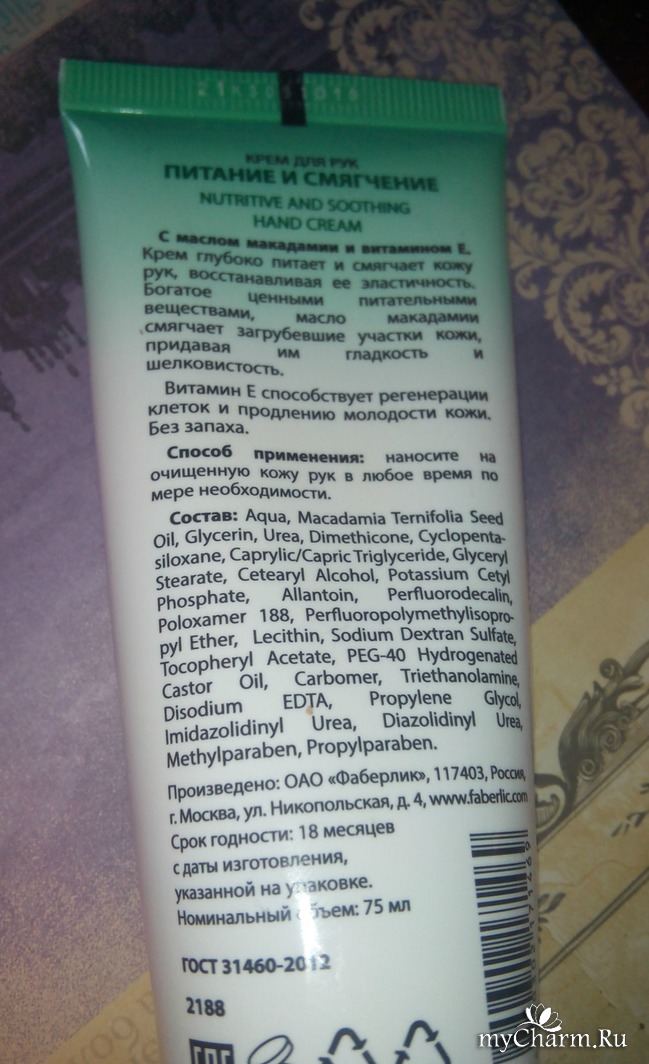 На обратной стороне тубы, мы видим описание полезных свойств активных веществ, которые и придадут нашей коже необходимое питание и увлажнение.