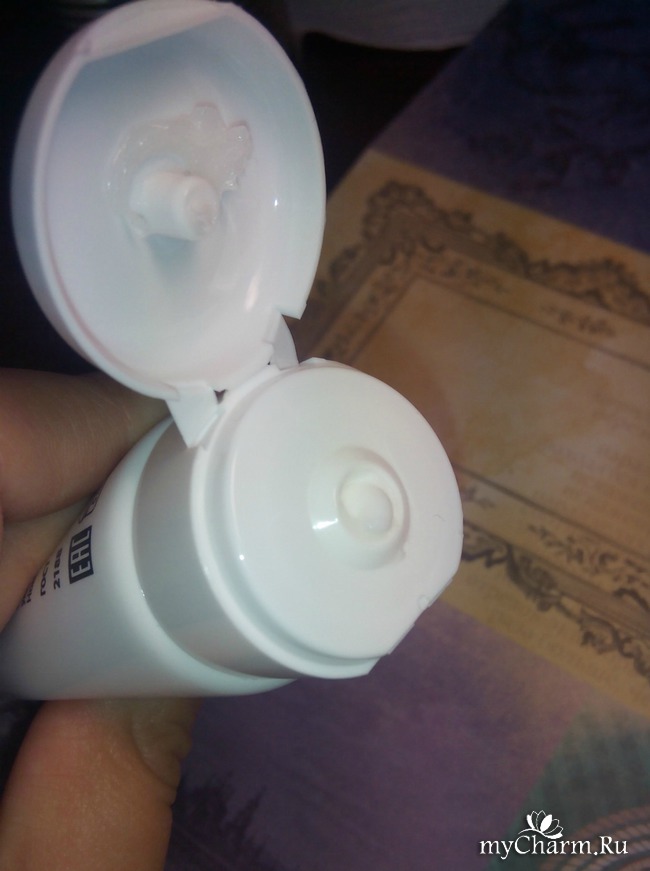 Вернемся к крему. Открывается туба при помощи крышки-открывашки, мне эта функция по-душе, все быстро и удобно. Дозируется содержимое равномерно, благодаря густой, кремообразной текстуре.